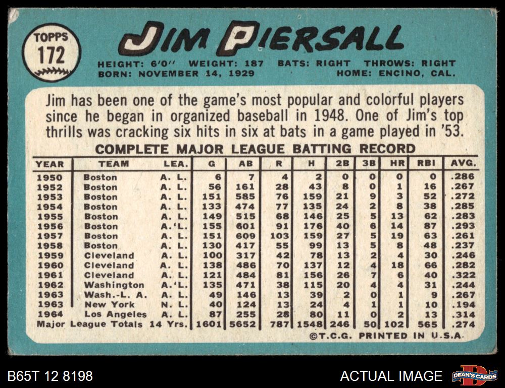 1965 Topps #172 Jimmy Piersall 2.5 - GD+