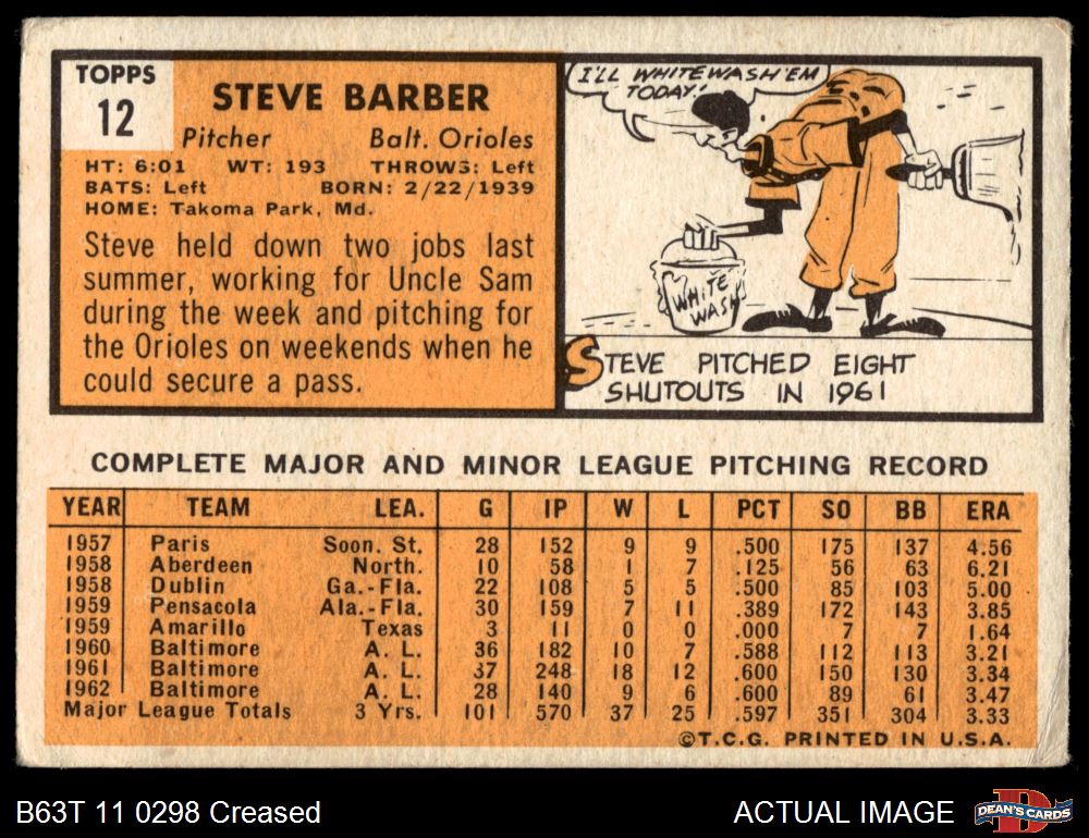 1963 Topps #12 Steve Barber 2.5 - GD+