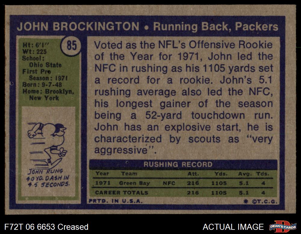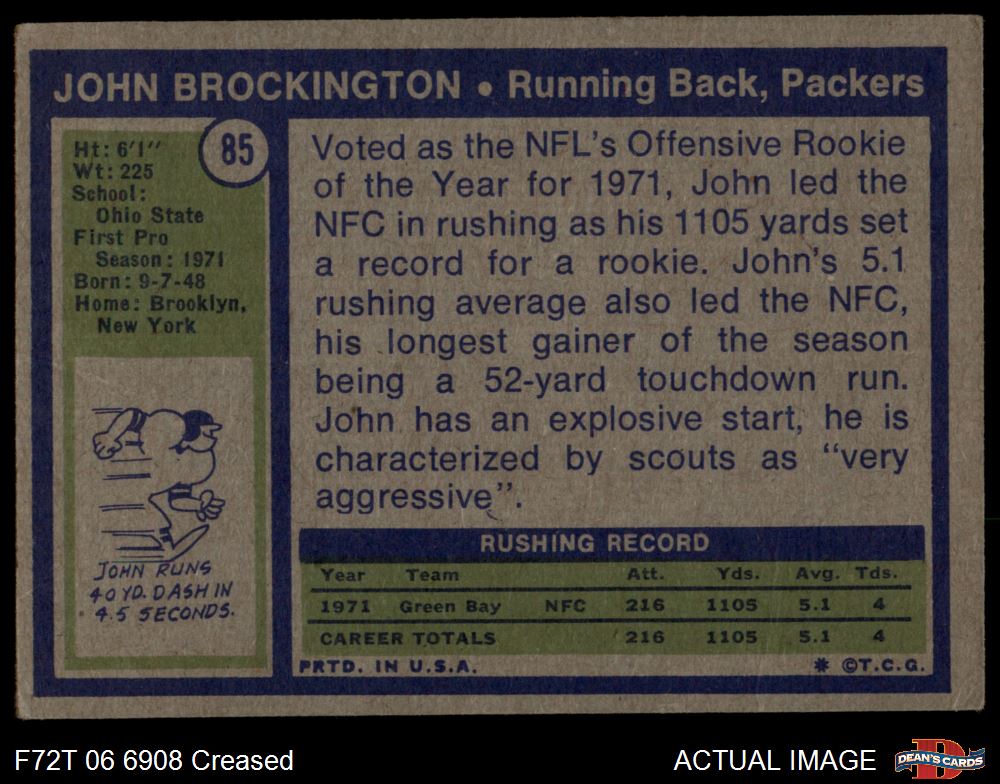 1972 Topps #85 John Brockington 3 - VG