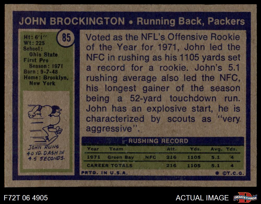 1972 Topps #85 John Brockington 6 - EX/MT