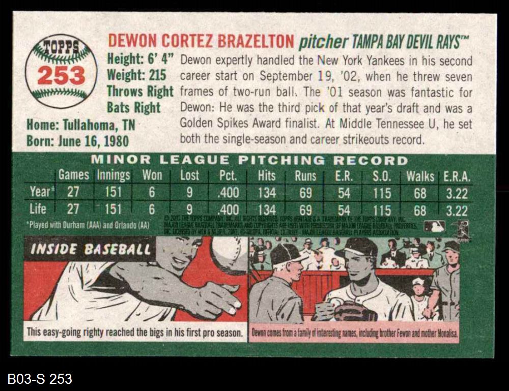 2003 Topps Heritage #253 Dewon Brazelton 8 - NM/MT