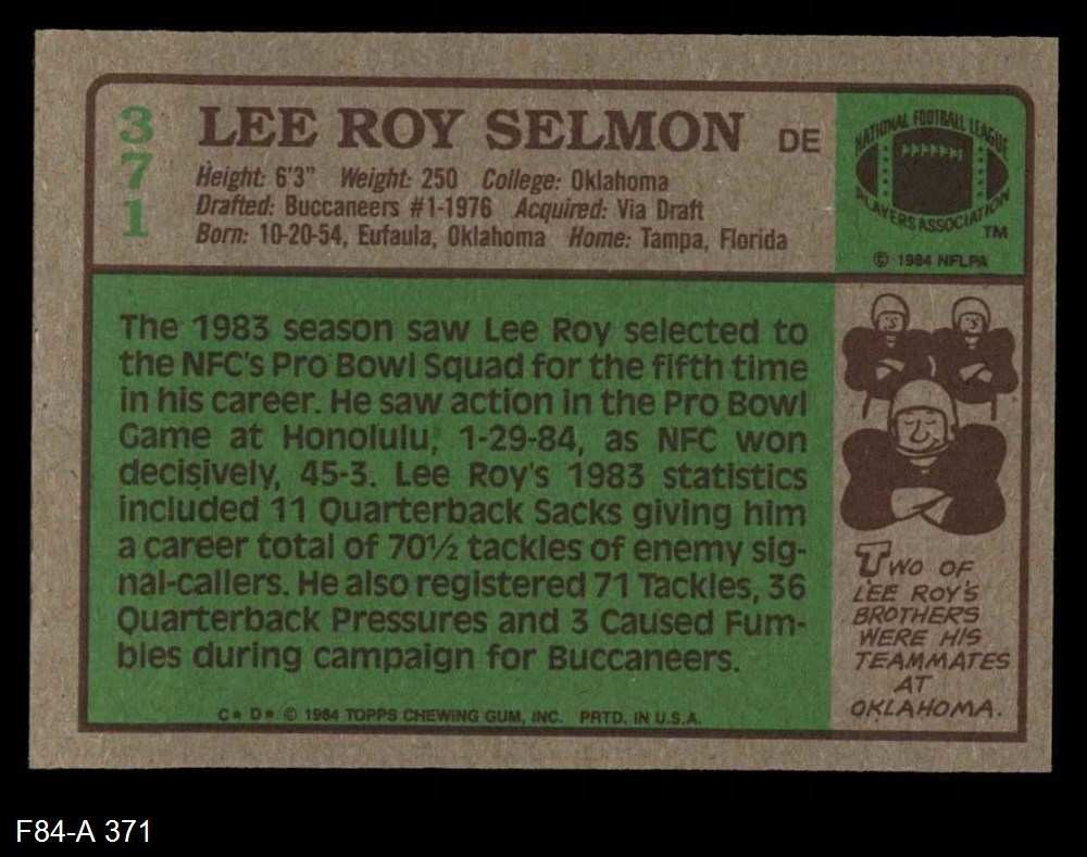 1984 Topps #371 Lee Roy Selmon 8 - NM/MT