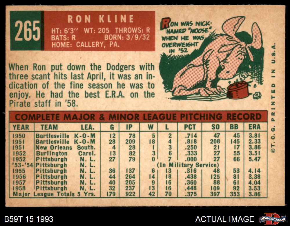 1959 Topps #265 Ron Kline 6 - EX/MT