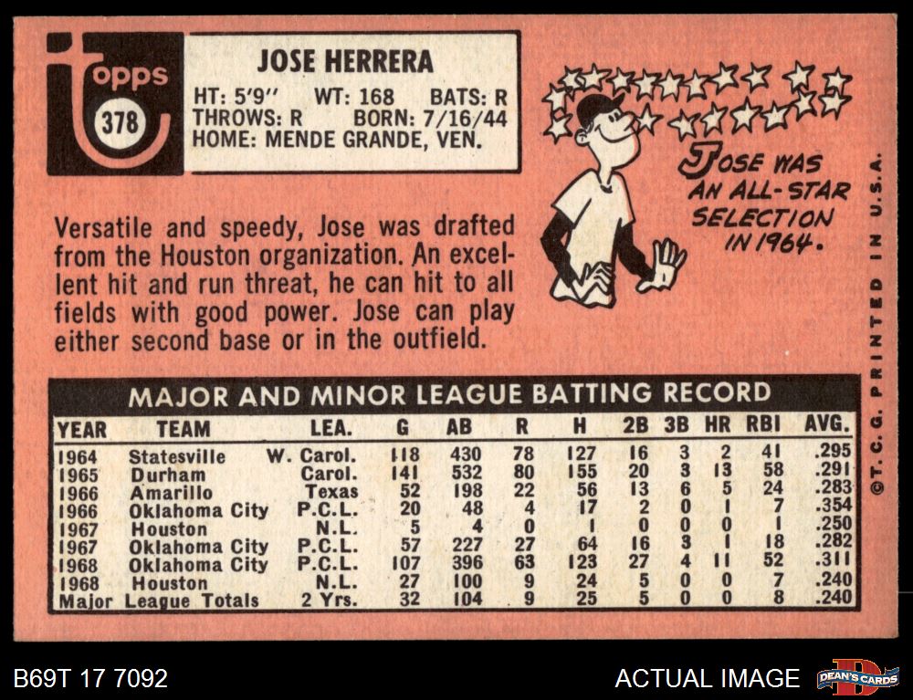 1969 Topps #378 Jose Herrera