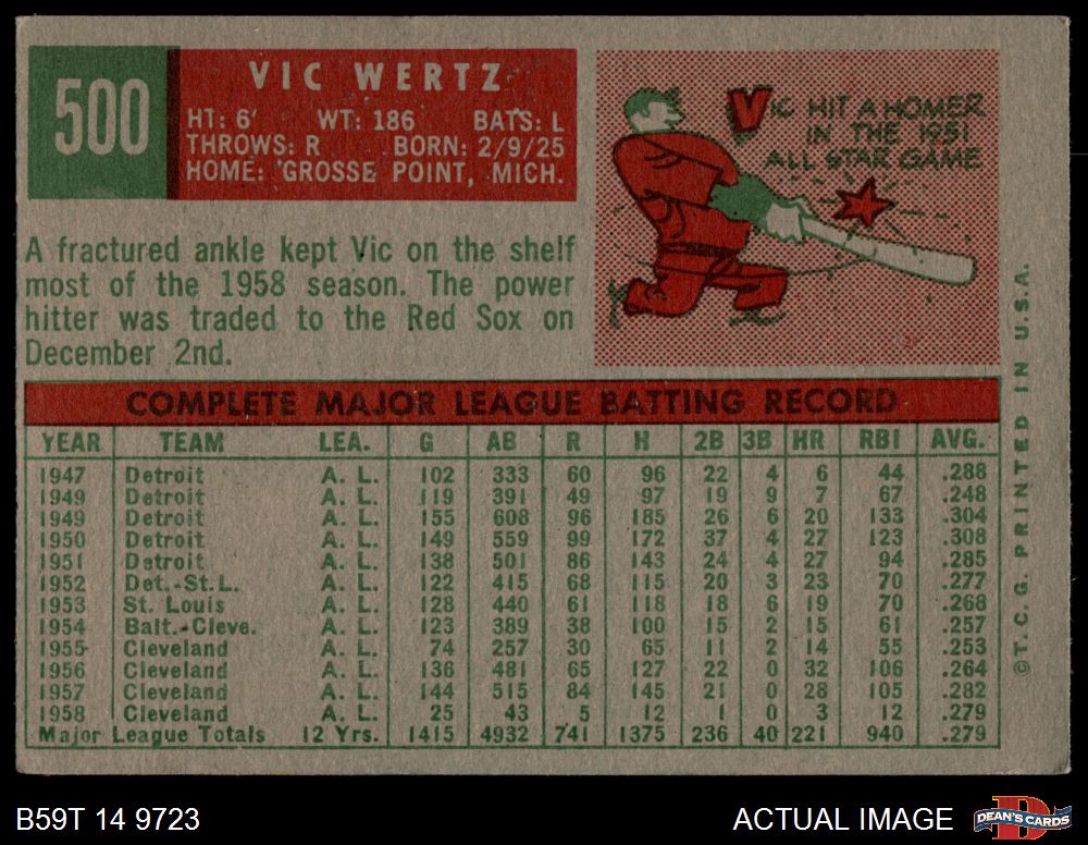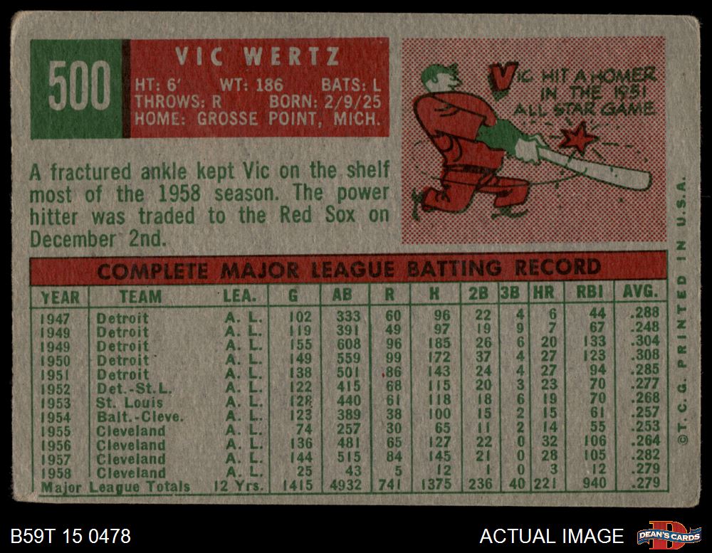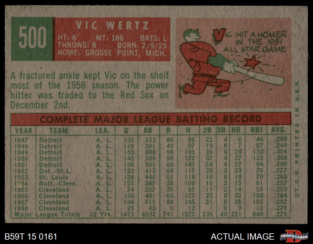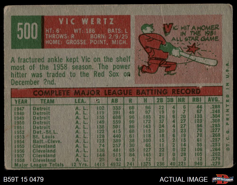 1959 Topps #500 Vic Wertz