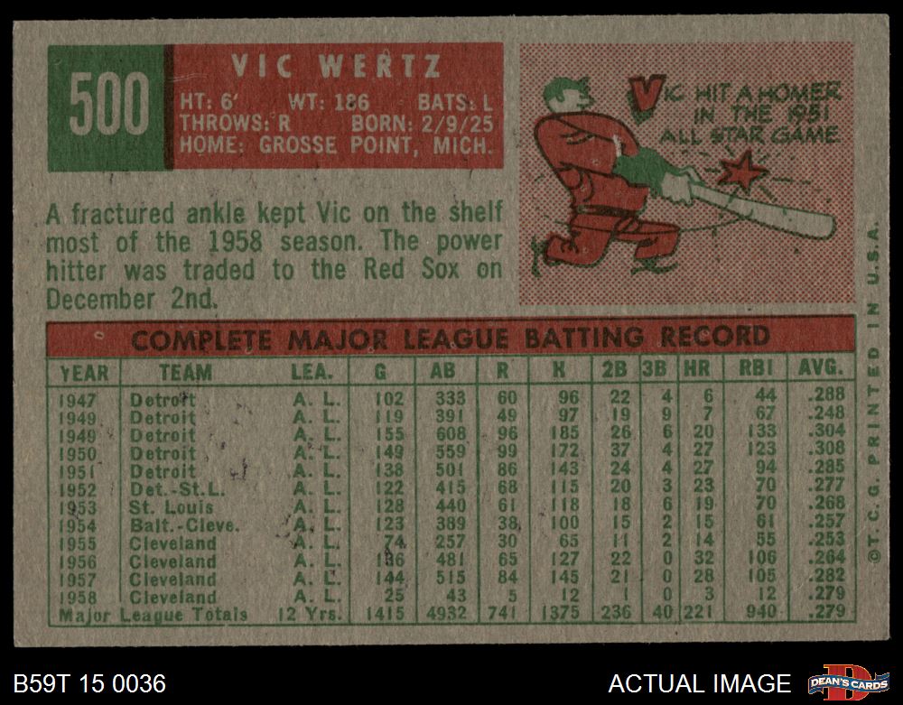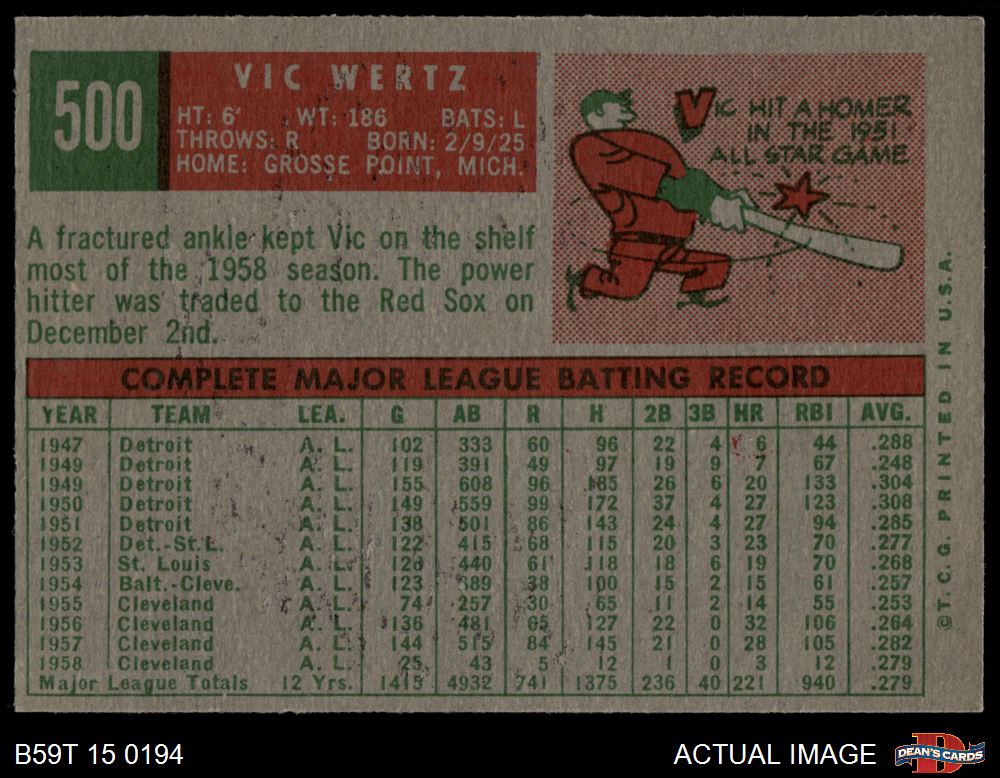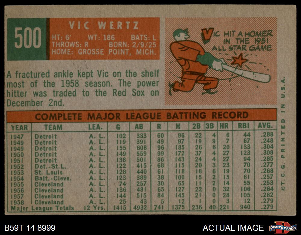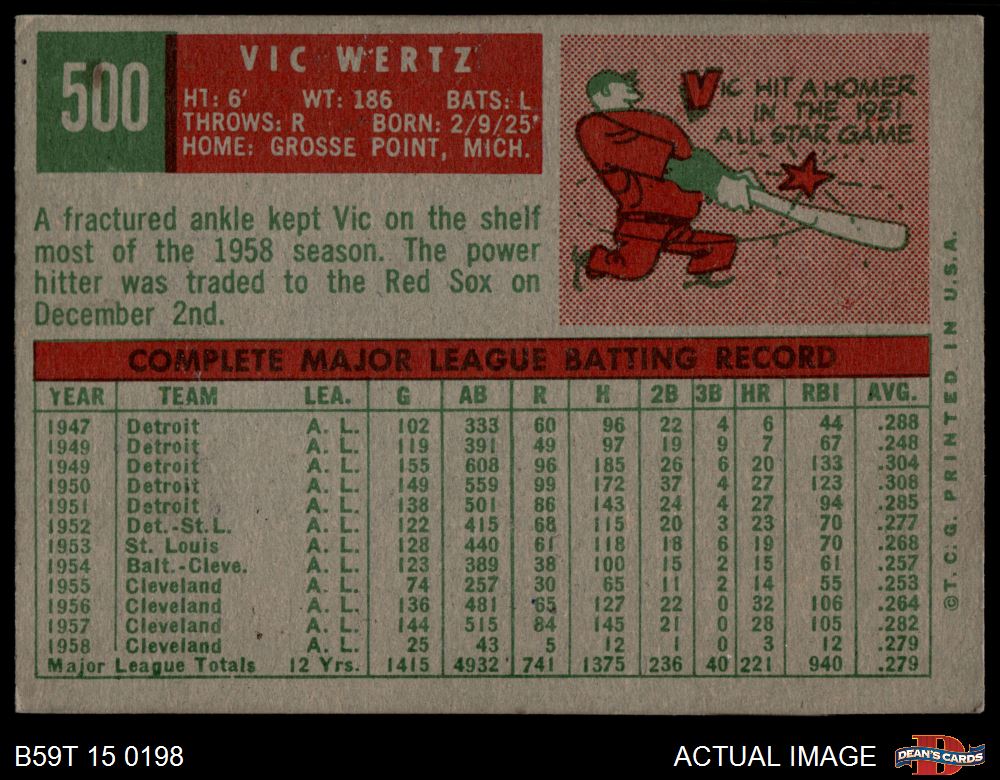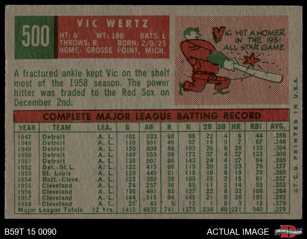 1959 Topps #500 Vic Wertz