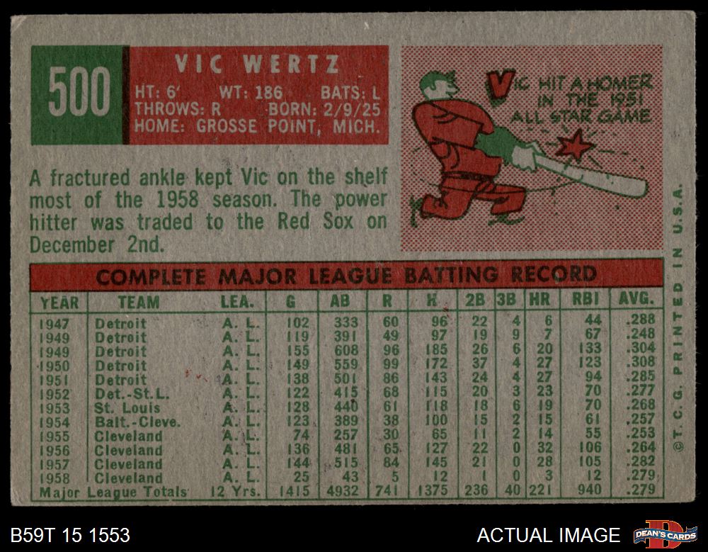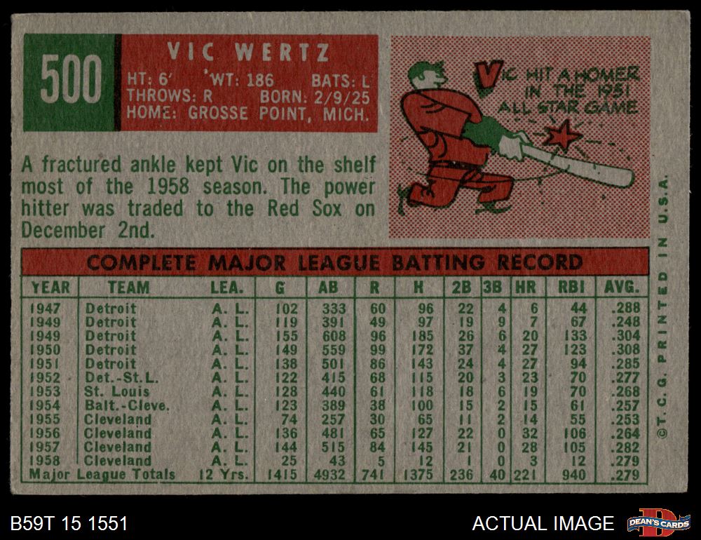 1959 Topps #500 Vic Wertz 4 - VG/EX
