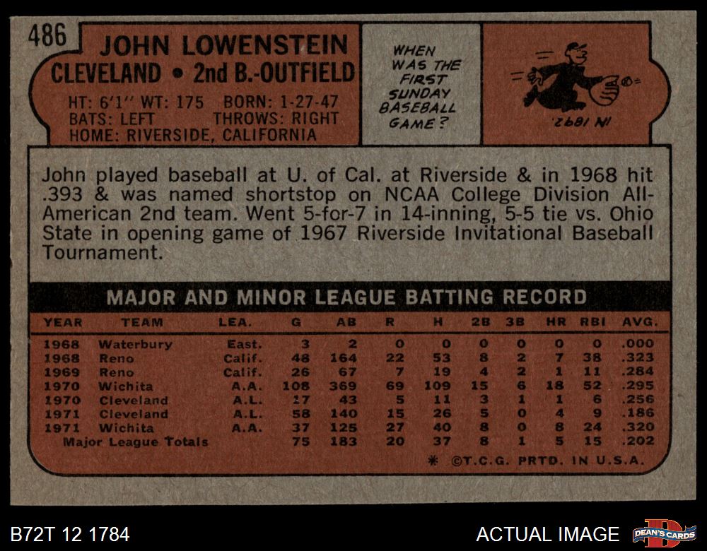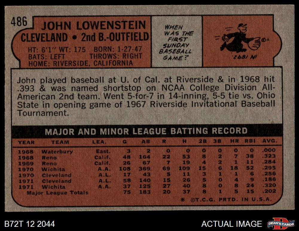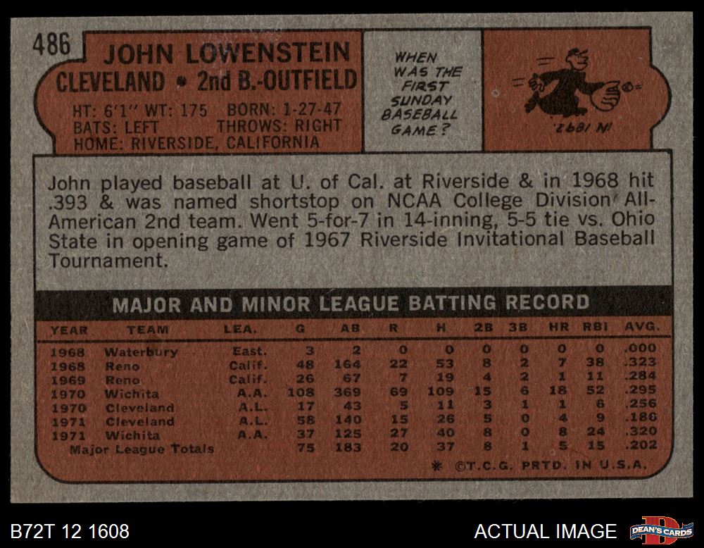 1972 Topps #486 John Lowenstein