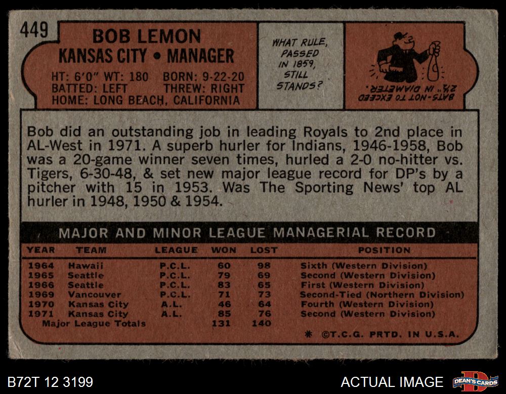 1972 Topps #449 Bob Lemon 1.5 - FAIR