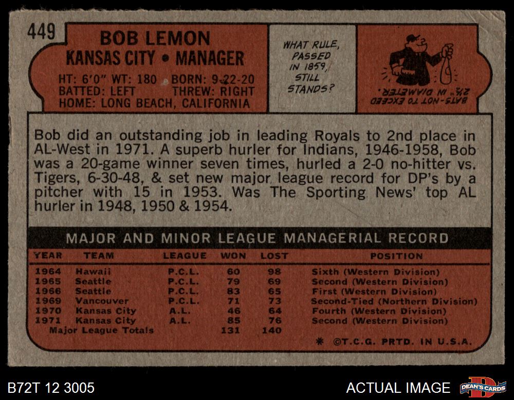 1972 Topps #449 Bob Lemon 2 - GOOD