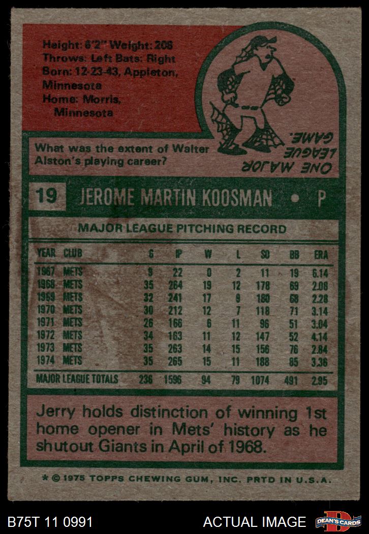 1975 Topps #19 Jerry Koosman