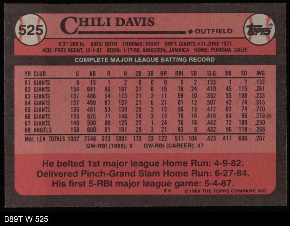 1989 Topps #525 Chili Davis
