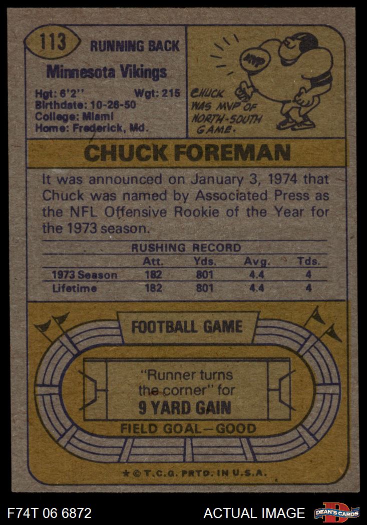 1974 Topps #113 ONE Chuck Foreman