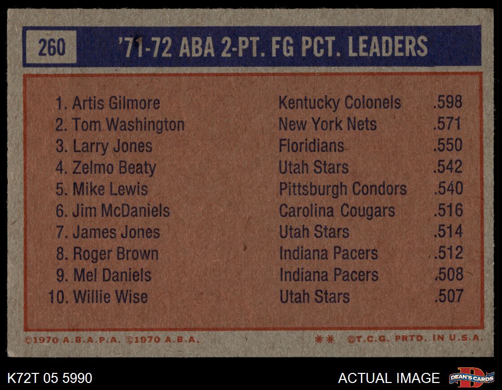 1972 Topps #260 - Artis Gilmore / Tom Washington / Larry Jones ABA 2-Pt Field Goal Pct Leaders 6.5 - EX/MT+