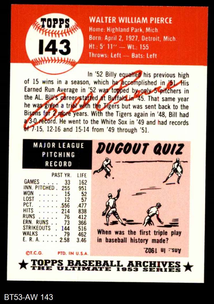 1953 Topps Archives #143 Billy Pierce 8 - NM/MT