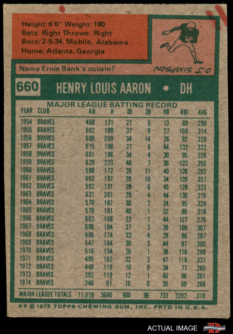 1975 Topps Mini #660 Hank Aaron 2 - GOOD