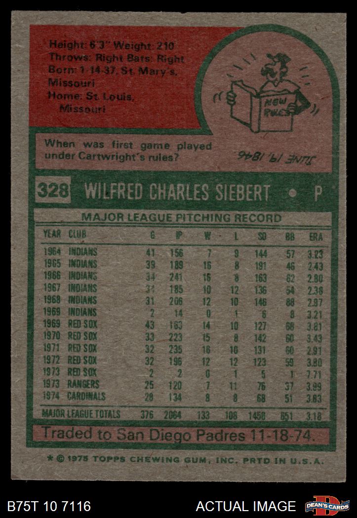1975 Topps #328 Sonny Siebert 6 - EX/MT