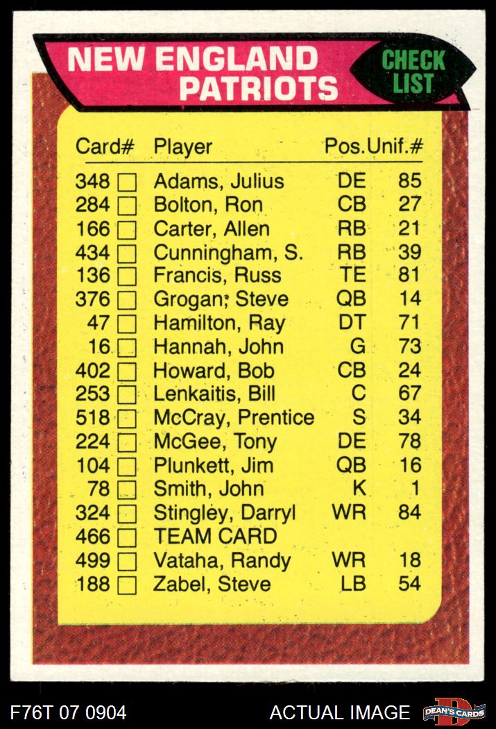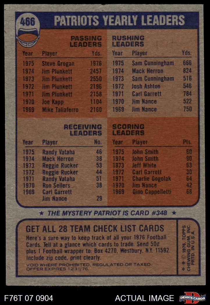 1976 Topps #466  Patriots Team Checklist Front Thumbnail