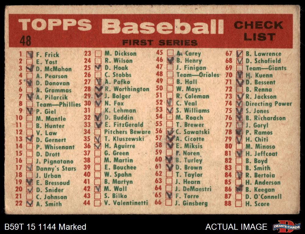 1959 Topps #48 Orioles Team Checklist 1 - POOR