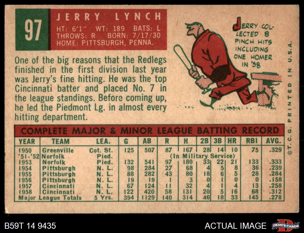 1959 Topps #97 Jerry Lynch 4 - VG/EX