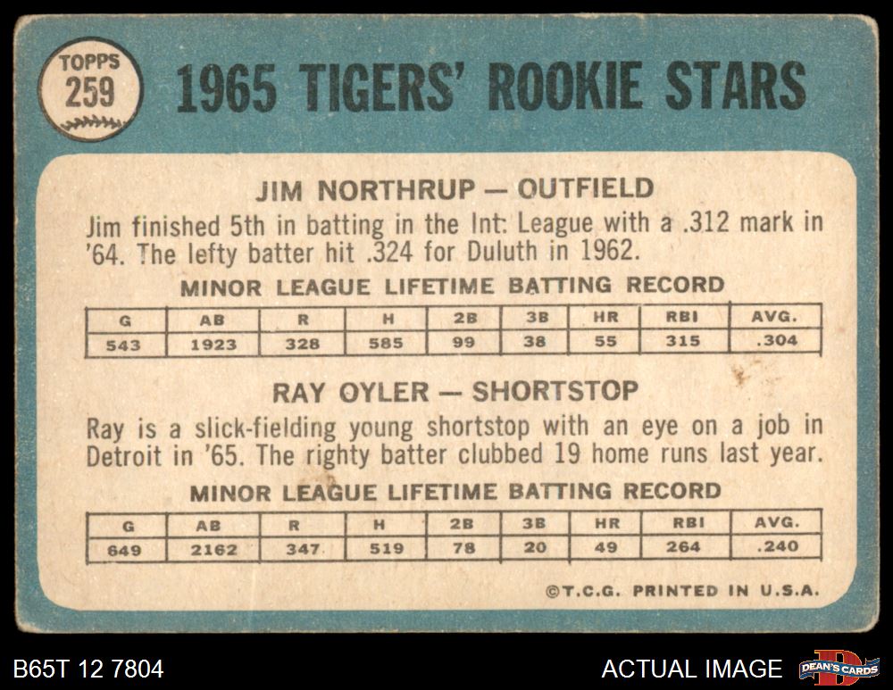 1965 Topps #259 - Jim Northrup / Ray Oyler Tigers Rookies 2 - GOOD