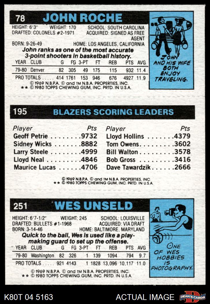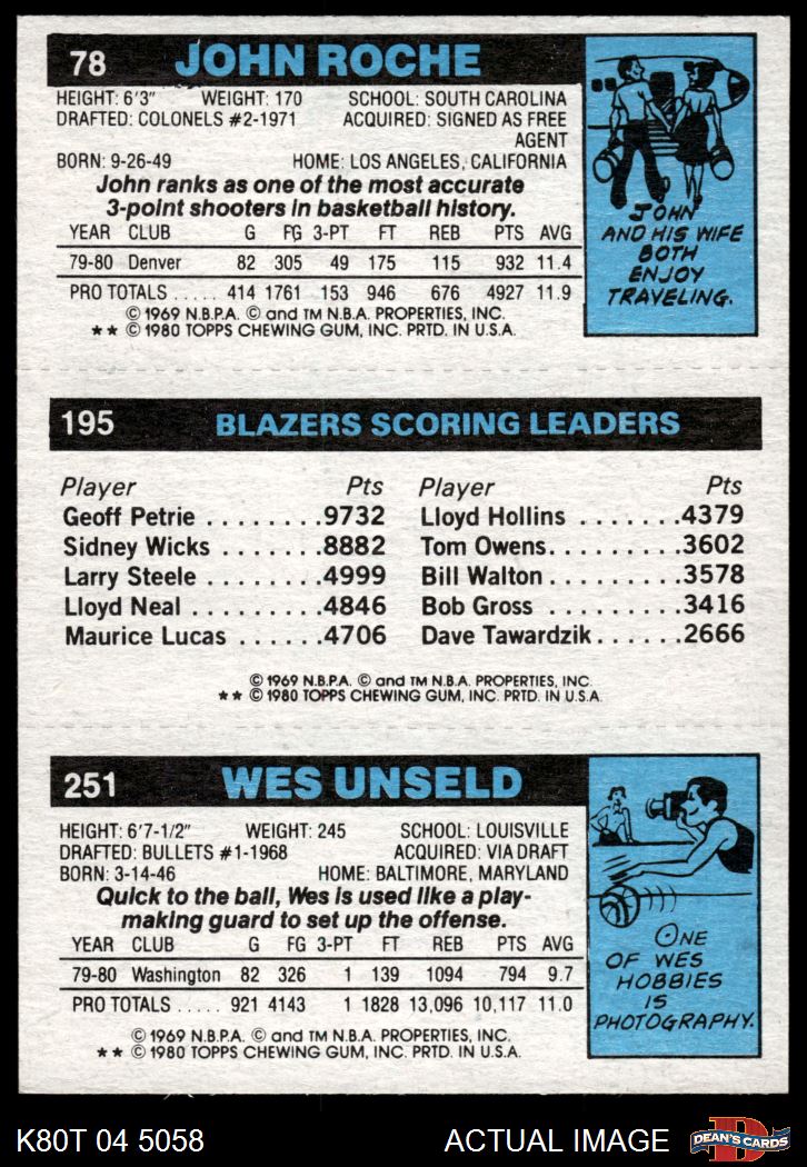 1980 1980 - Wes Unseld / Tom Owens / John Roche 251 / 195 / 78 7 - NM