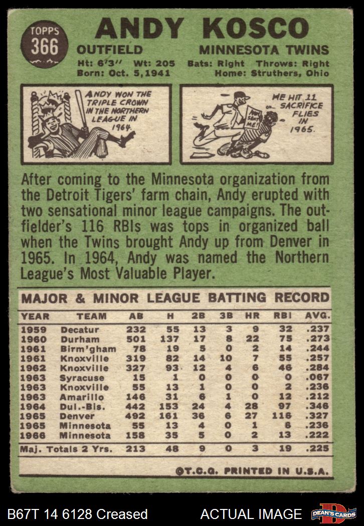 1967 Topps #366 Andy Kosco