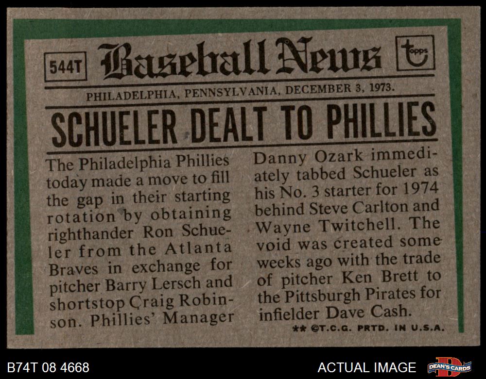 1974 Topps Baseball Cards (16,096 available)1974 Topps Traded Phillies (203 available)