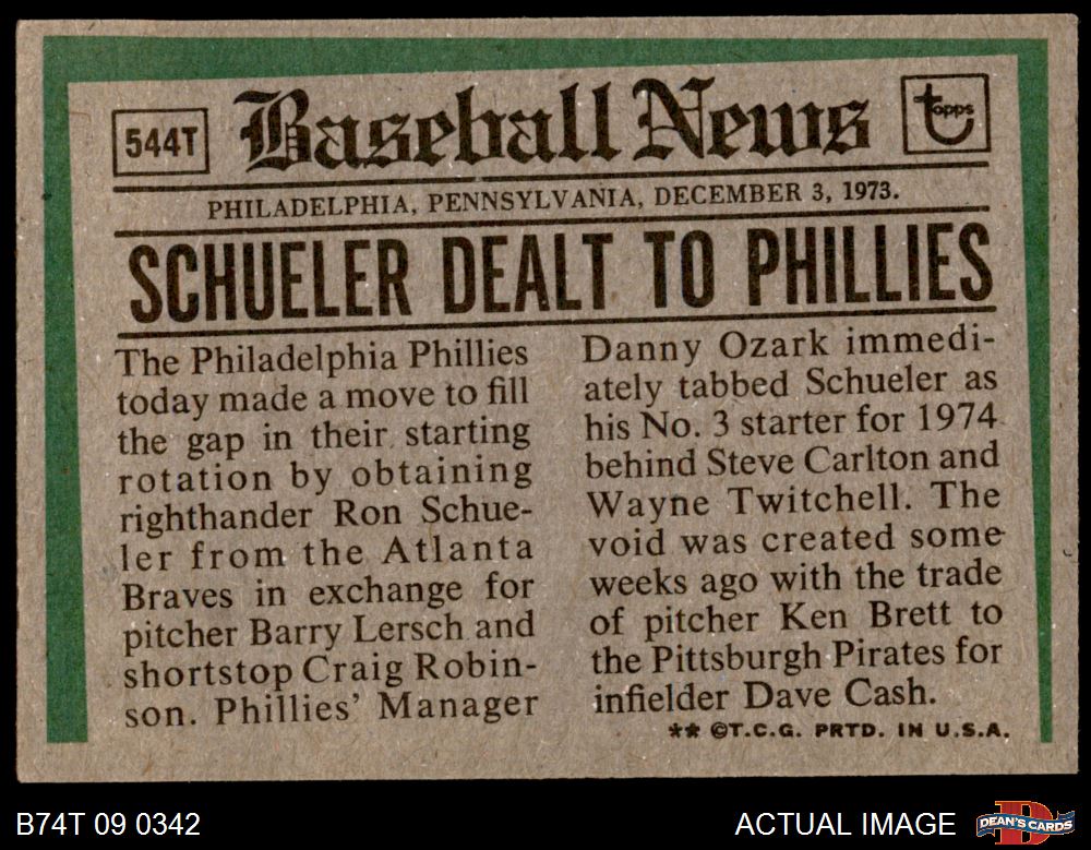 1974 Topps #544 T - Ron Schueler Traded 5 - EX