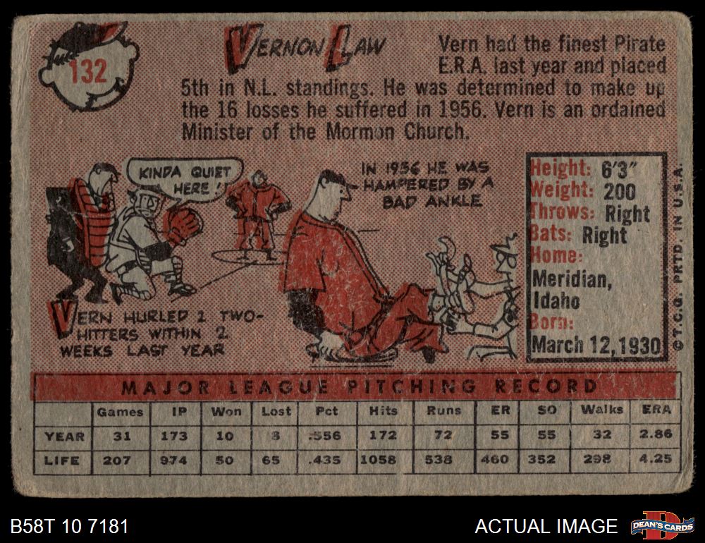 1958 Topps #132 Vern Law 1 - POOR