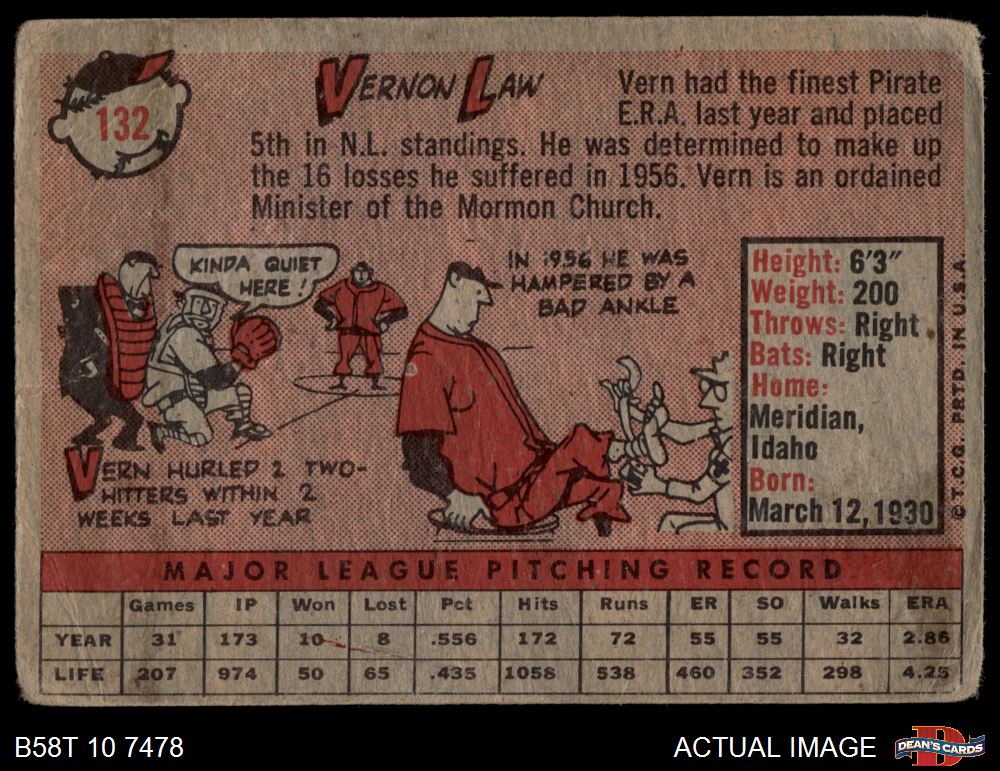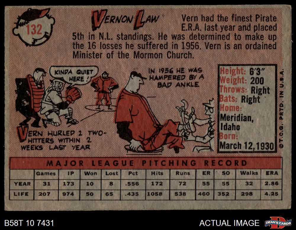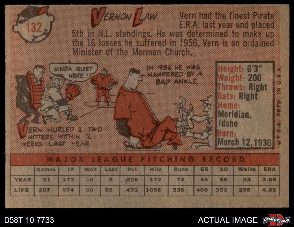 1958 Topps #132 Vern Law