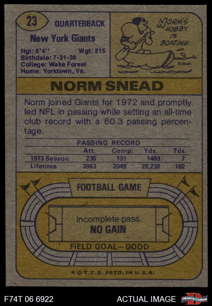 1974 Topps #23 ONE Norm Snead