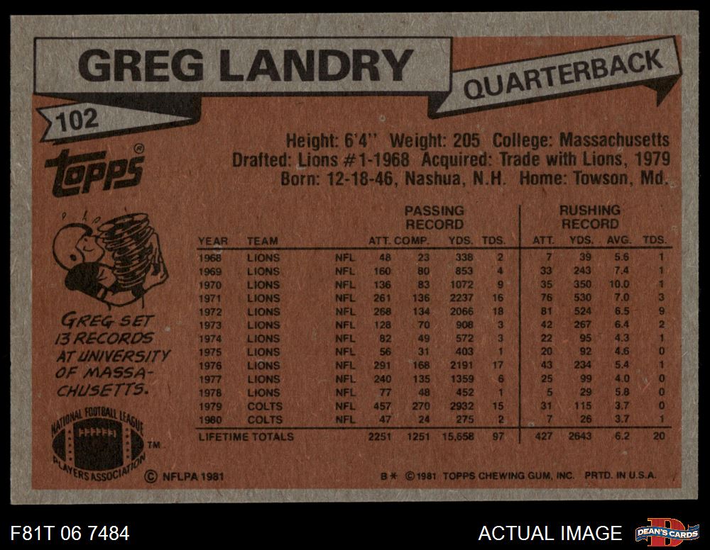 1981 Topps #102 Greg Landry 6 - EX/MT