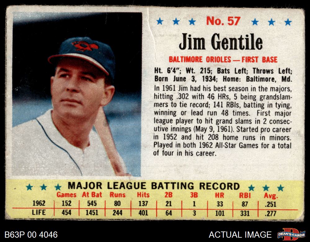 1963 Post Cereal #57 Jim Gentile 2 - GOOD