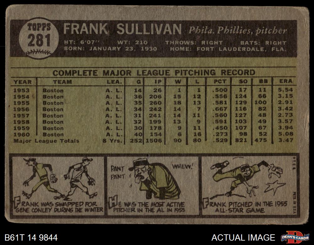 1961 Topps #281 Frank Sullivan 1 - POOR