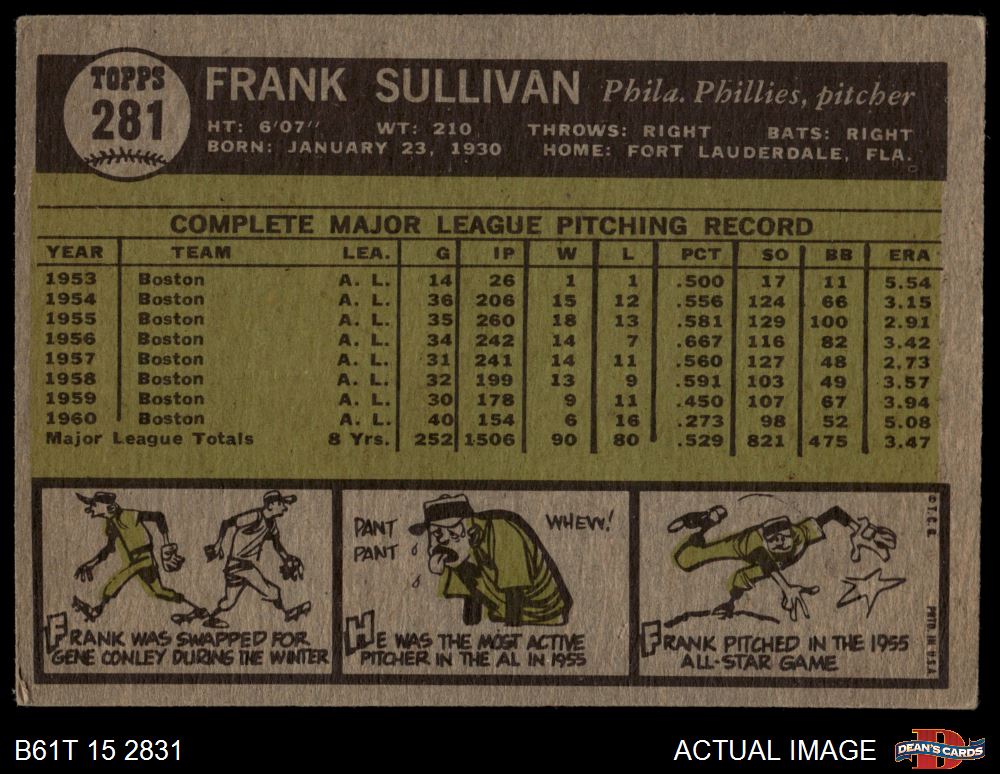 1961 Topps #281 Frank Sullivan