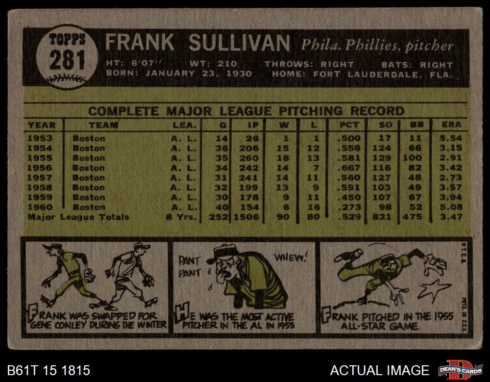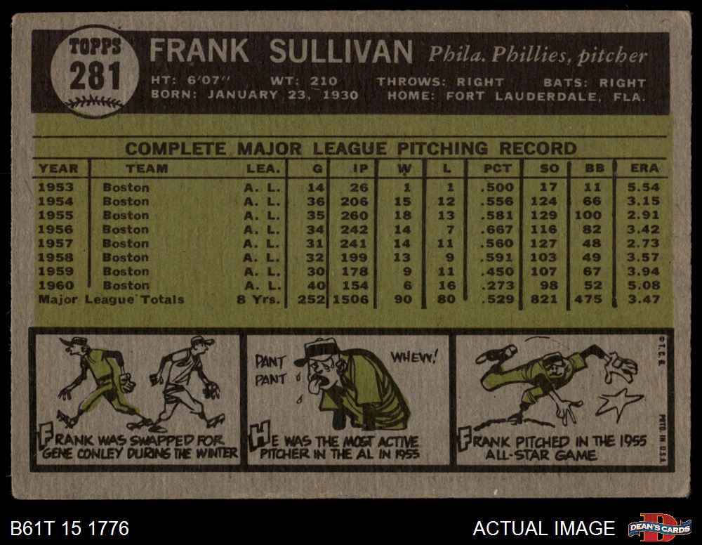 1961 Topps #281 Frank Sullivan 2 - GOOD