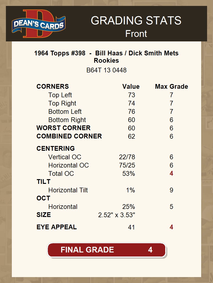 1964 Topps #398 - Bill Haas / Dick Smith Mets Rookies 4 - VG/EX