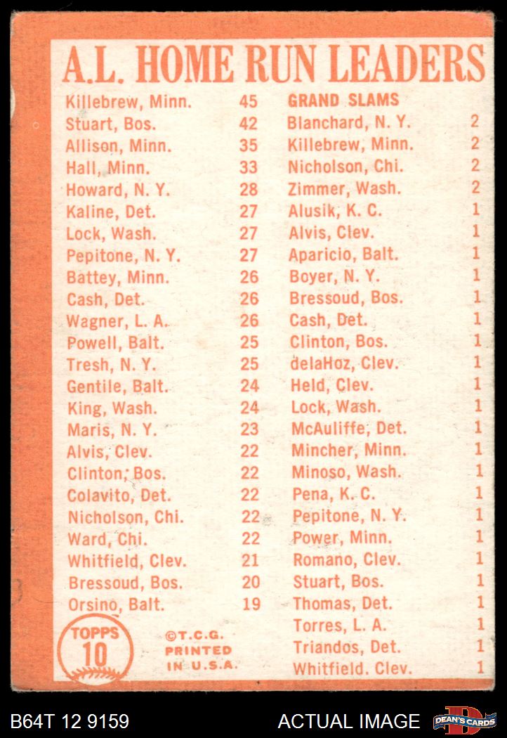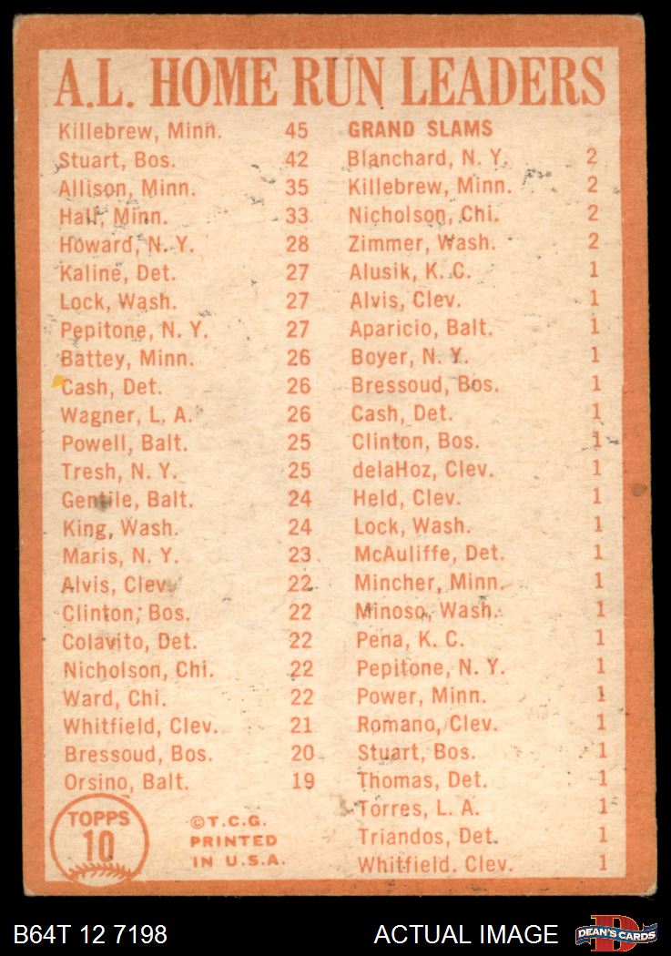 1964 Topps #10 AL HR Leaders
