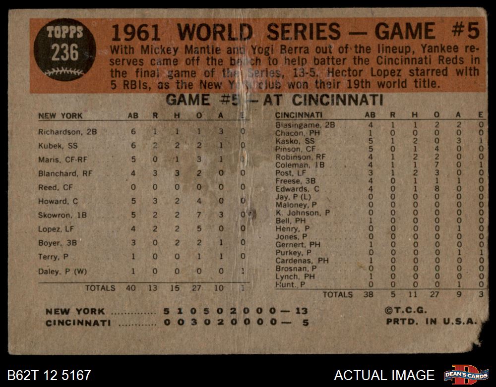 1962 Topps #236 1961 World Series - Game #5 - Yanks Crush Reds in Finale AUTHENTIC