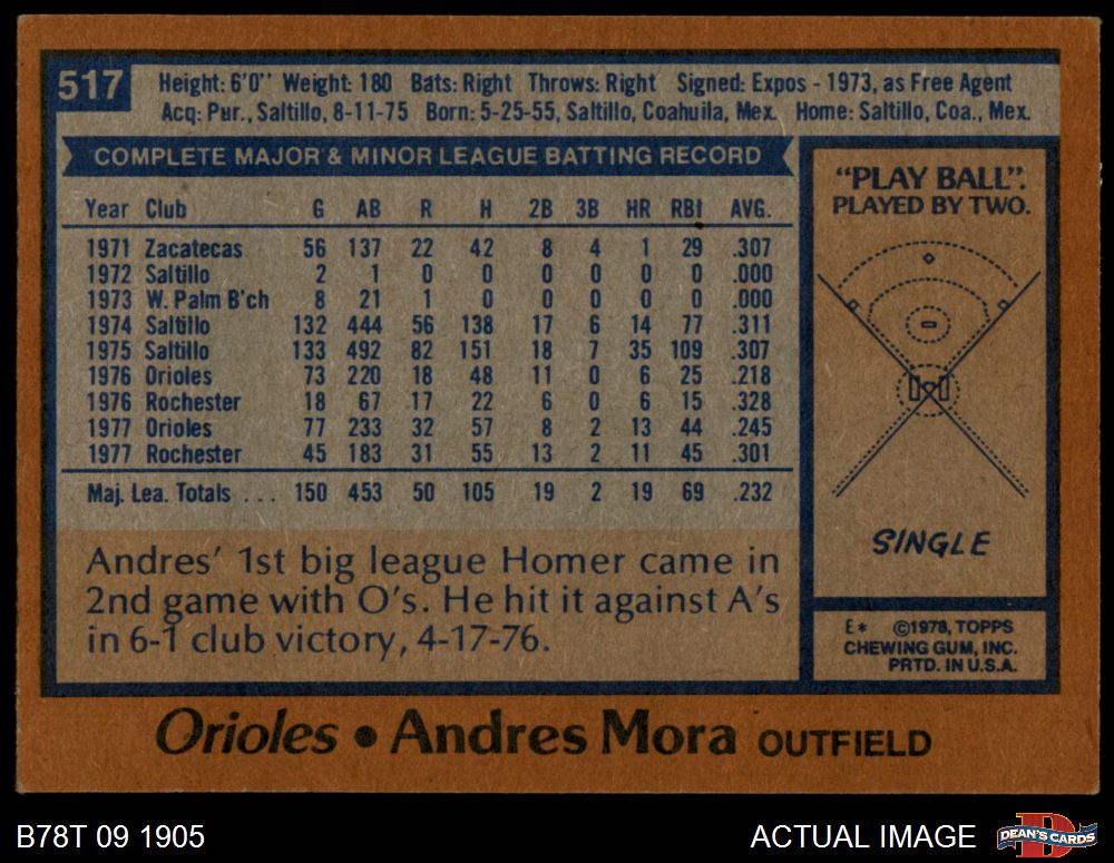1978 Topps #517 Andres Mora