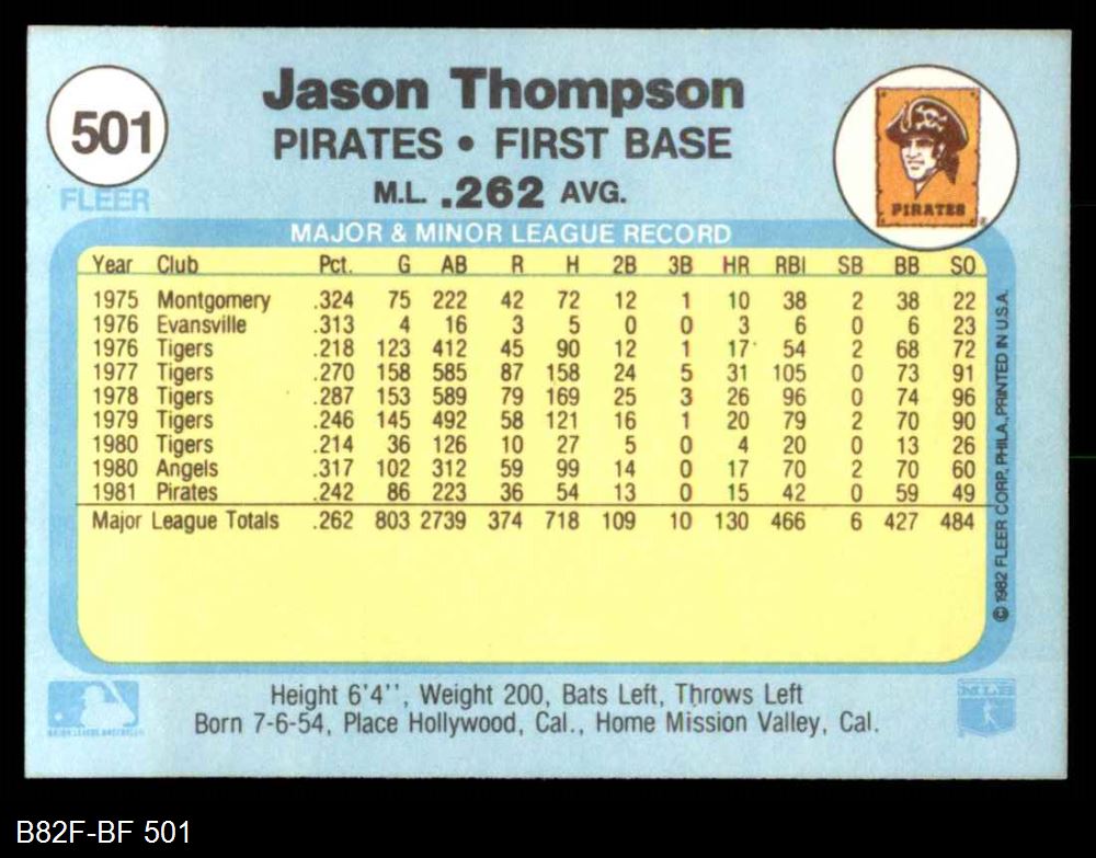 1982 Fleer #501 Jason Thompson