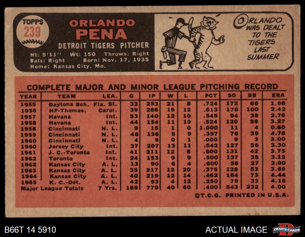 1966 Topps #239 Orlando Pena 2 - GOOD