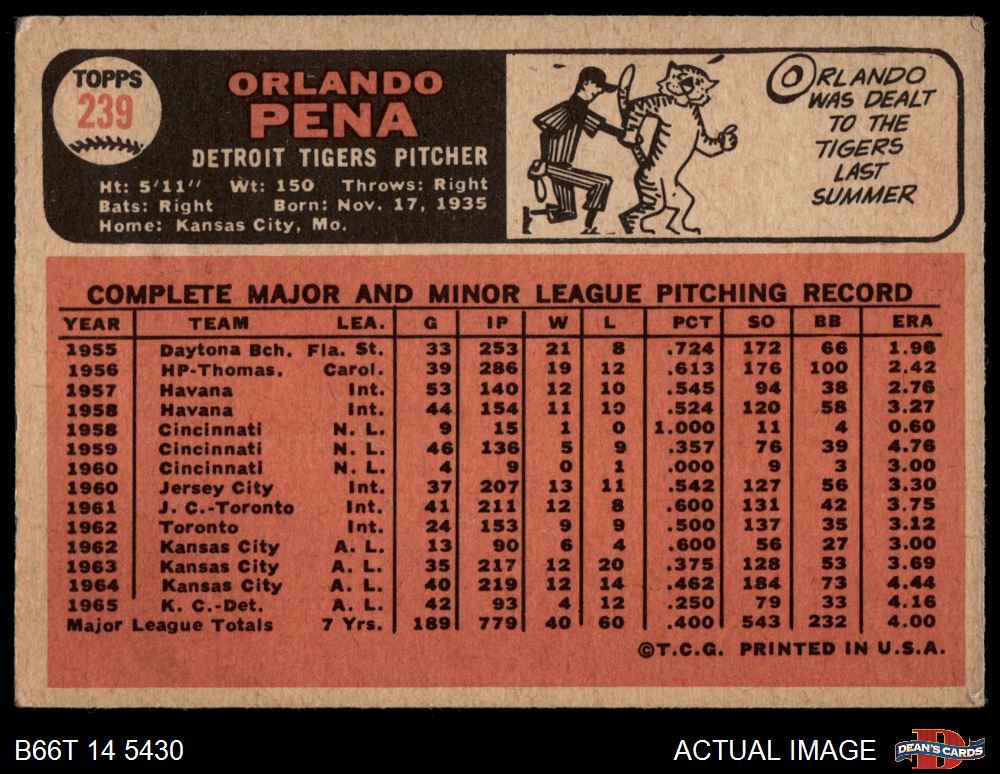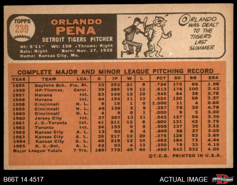 1966 Topps #239 Orlando Pena 3 - VG