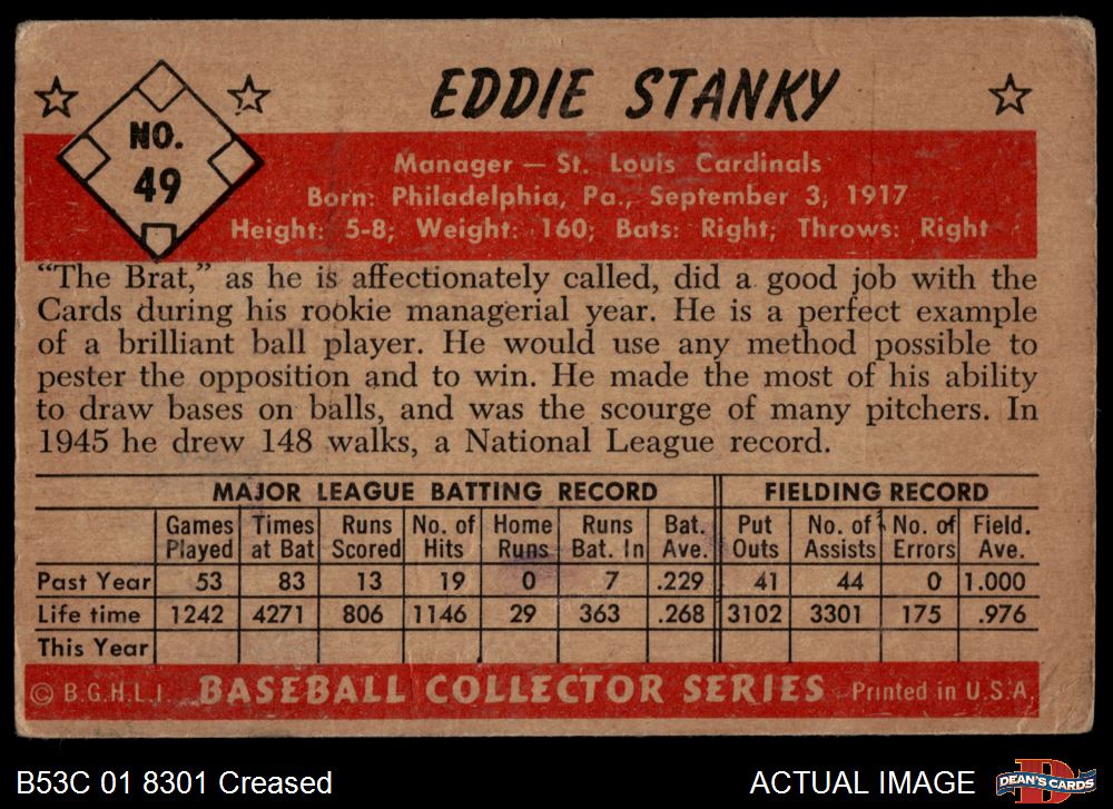 1953 Bowman #49 Eddie Stanky 2 - GOOD