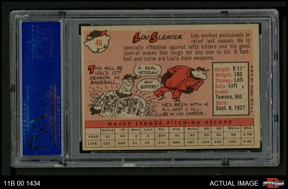 1958 Topps #46 YN Lou Sleater PSA 6 - EX/MT