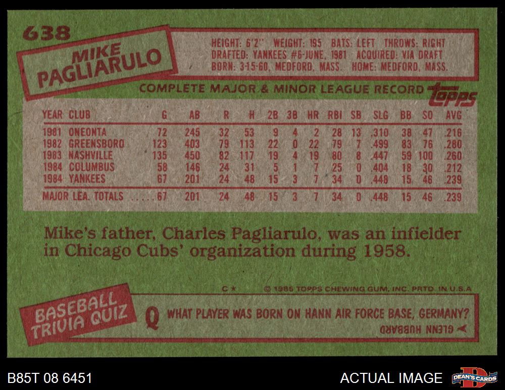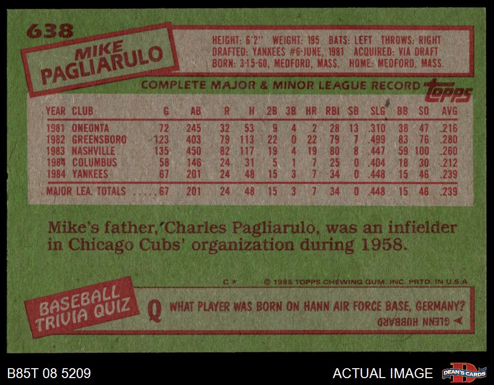 1985 Topps #638 Mike Pagliarulo 8.5 - NM/MT+