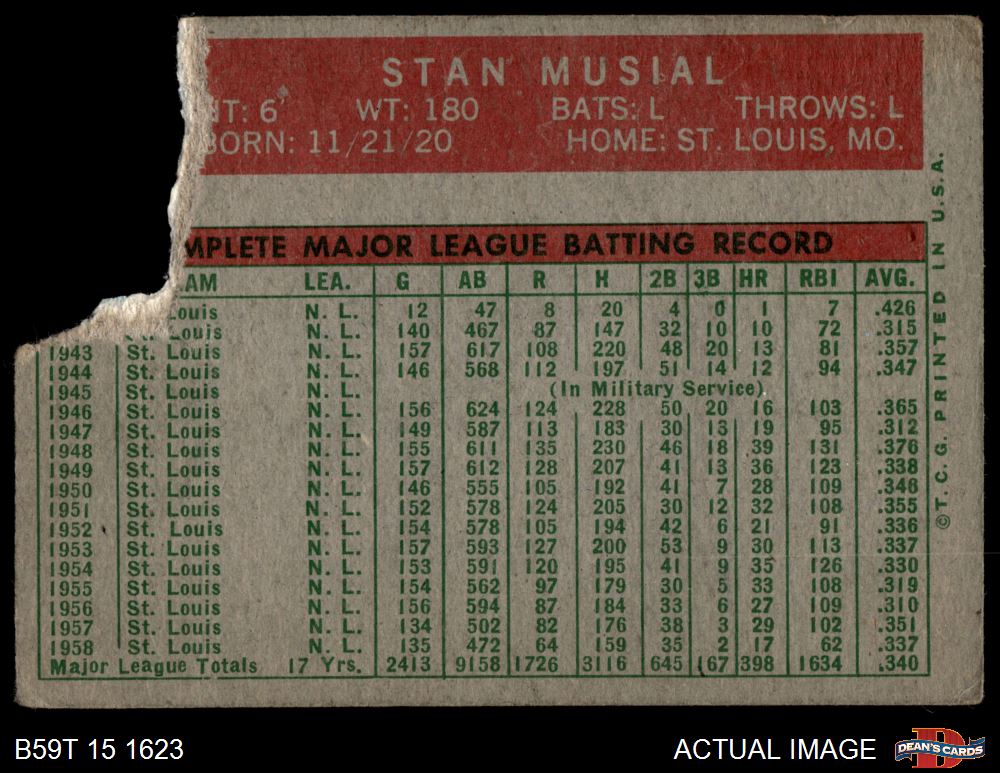 1959 Topps #150 Stan Musial AUTHENTIC