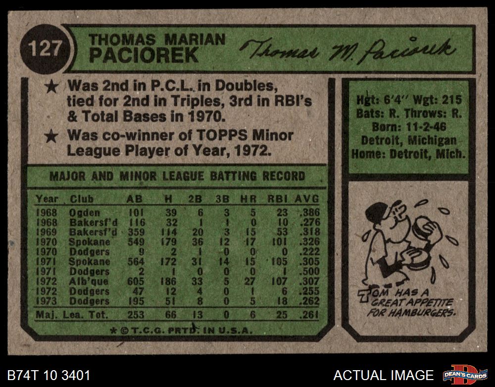 1974 Topps #127 Tom Paciorek 6.5 - EX/MT+