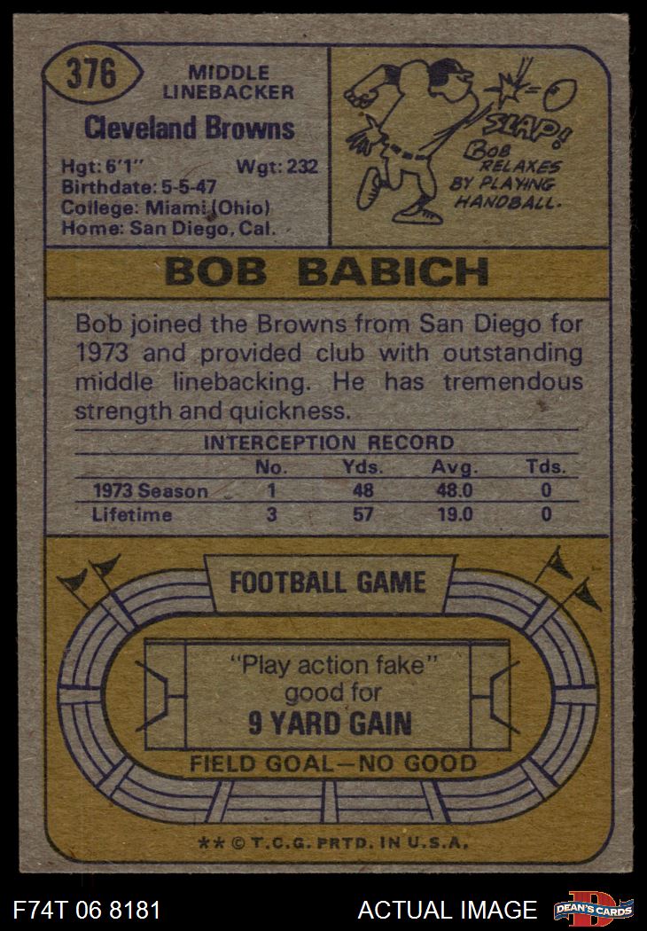1974 Topps #376 Bob Babich 4 - VG/EX